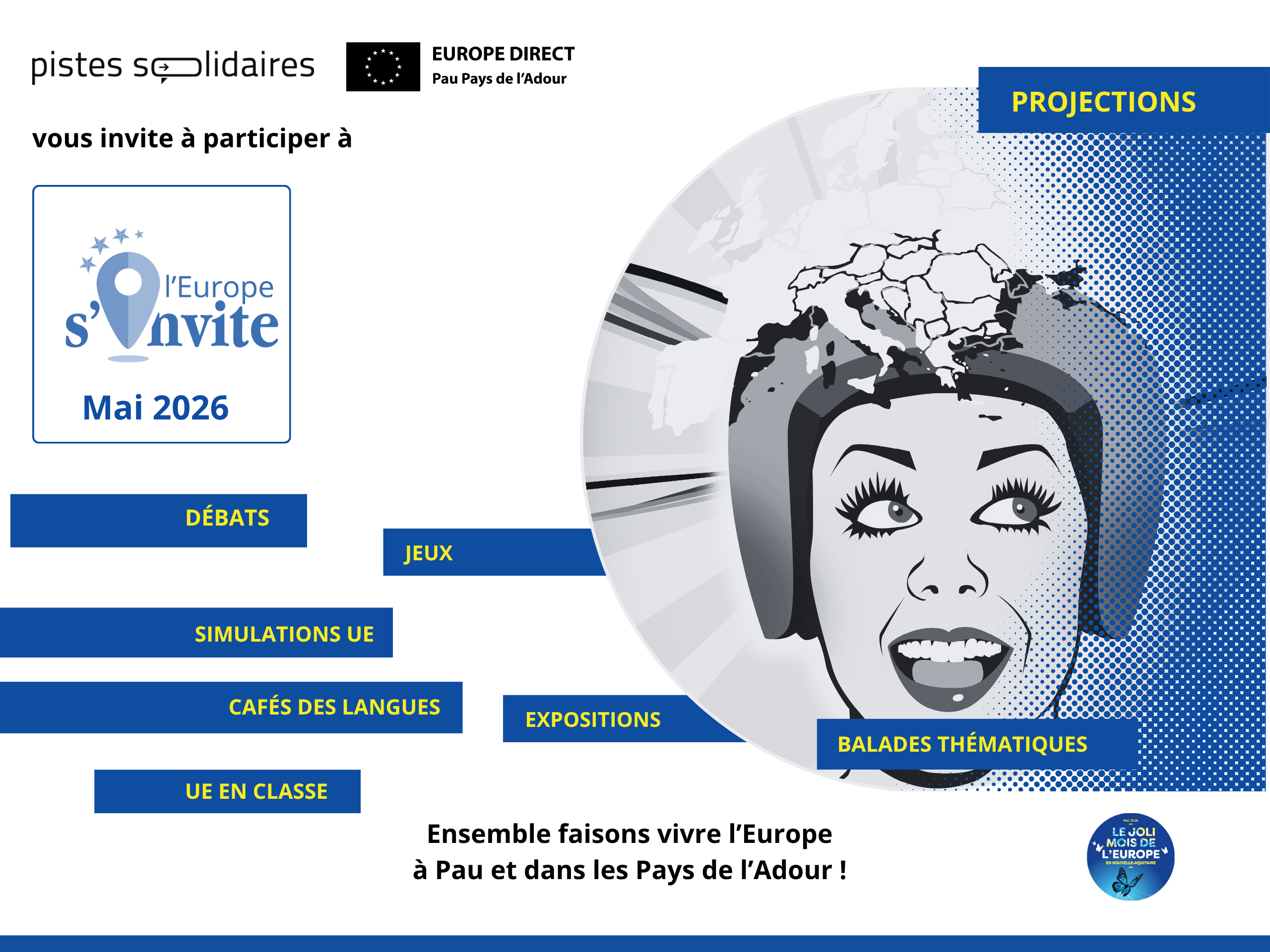 Tout au long du mois de mai, « L’EUROPE S’INVITE » dans des lieux de vie à Pau et dans les Pays de l’Adour.